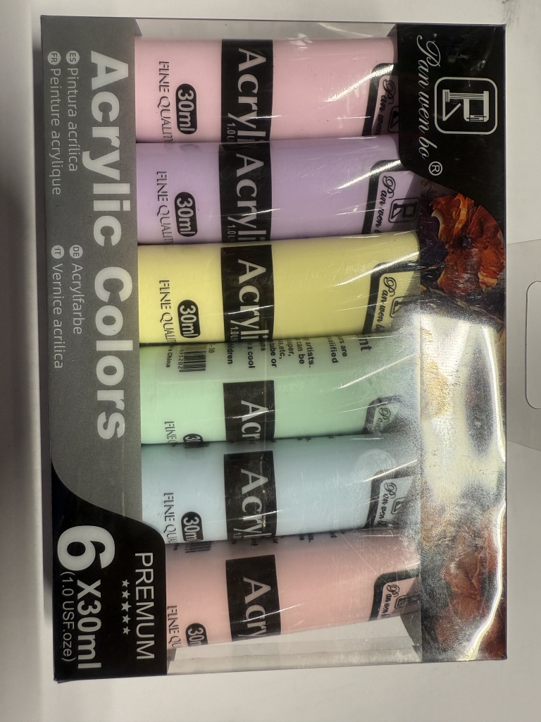 Užsisakykite dabar ir leiskite savo kūrybai išsiskirti su Akriliniais dažais 6sp x 30ml Pan Wen Bo pastelinėmis spalvomis!