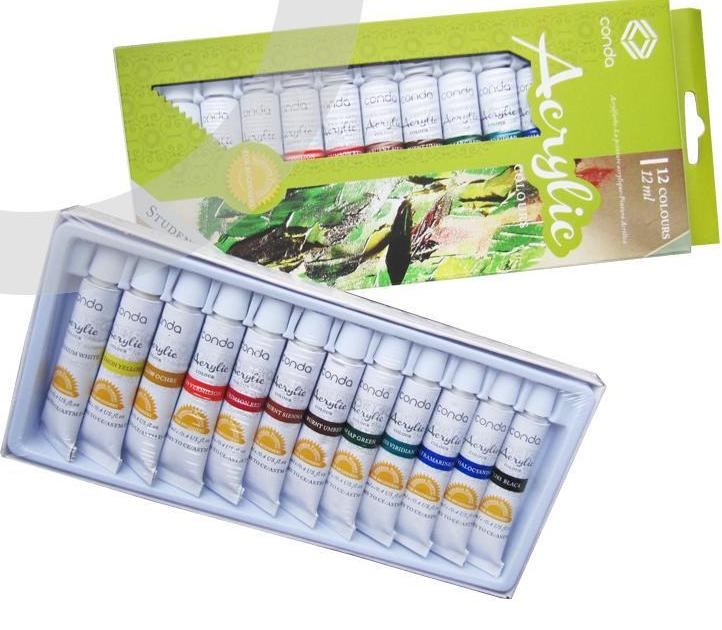 Akriliniai dažai CONDA, 12 spalvų, 12ml.