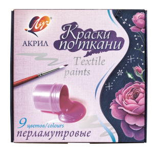 Akriliniai dažai perlamutriniai audiniams LUČ, 9 spalvų po 15 ml
