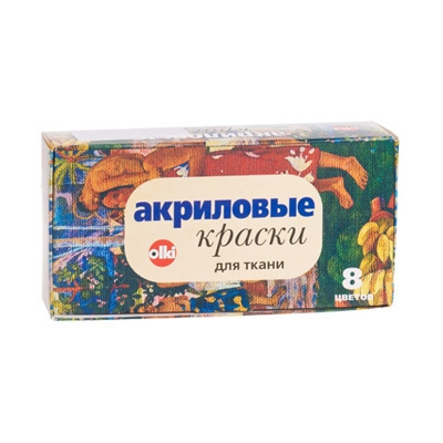 Akrilinių dažų rinkinys audiniams OLKI, 8 spalvų x 22ml