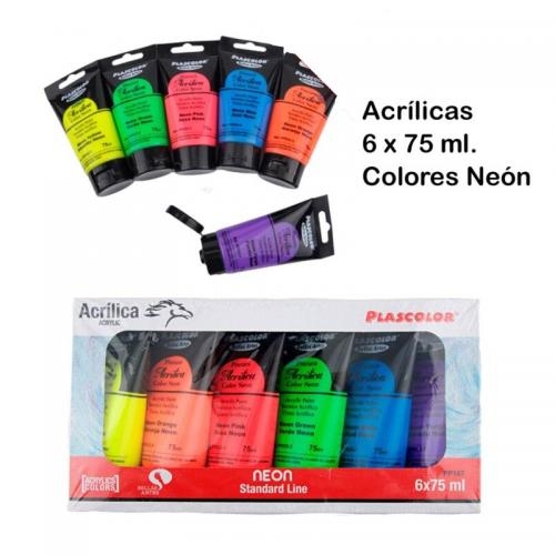 - Rinkinys sudarytas iš 6 neoninių akrilo dažų, kurių kiekvienas tūris yra 75 ml.