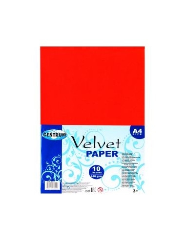 Aksominis popierius 140 g, A4, 10 spalvų – Centrum
