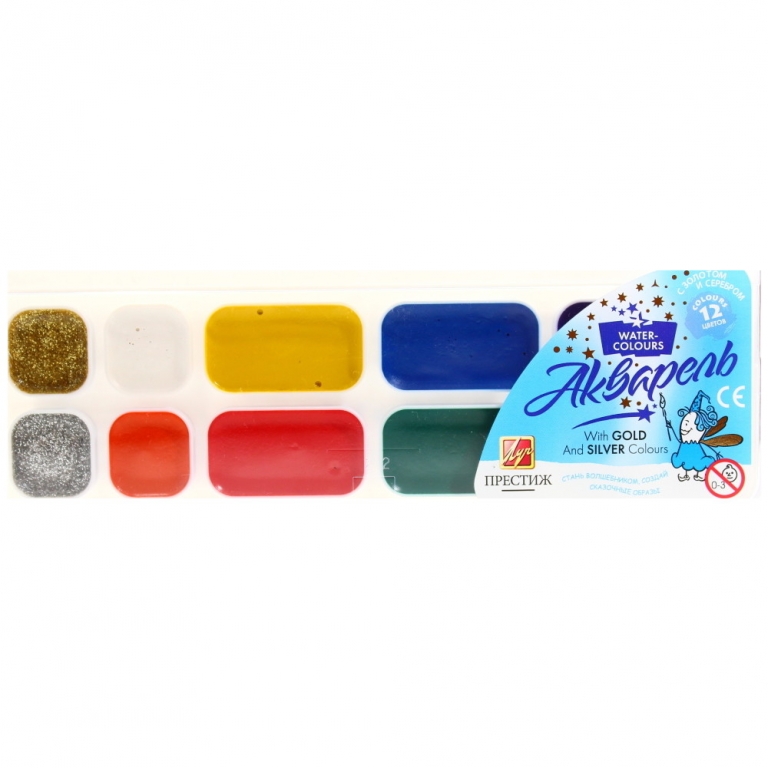 Akvareliniai dažai 12 spalvų, su auksine ir sidabrine, Luč Prestiž