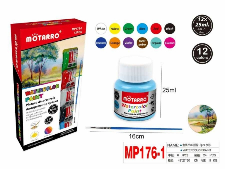 Akvareliniai dažai 12spalvų x 25ml MOTARRO