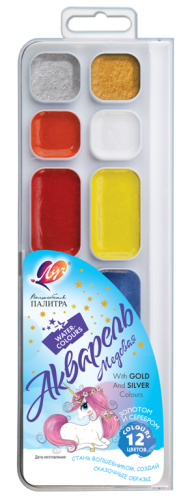 Akvareliniai dažai Luch "Stebuklinga paletė" 10 spalvų + 1 aukso + 1 sidabro spalvos