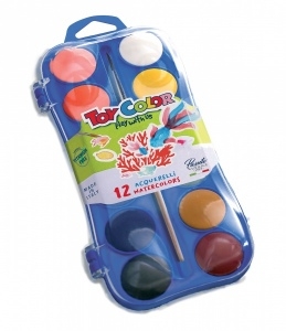 Akvareliniai dažai Toy Color 30 mm 12 spalvos su teptuku