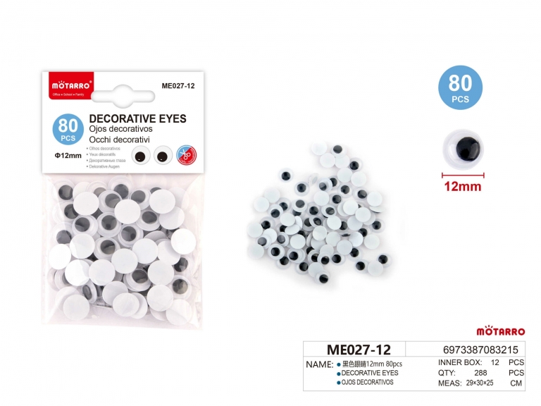 Akytės judančios 12mm 80vnt juodos spalvos MOTARRO