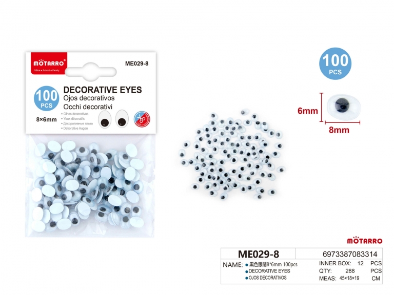 - Dydis: 8×6 mm – optimalus pasirinkimas, kad akys būtų ryškios ir matomos.