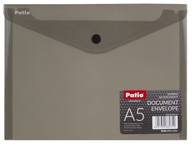 Aplankas (vokas) su spaustuku PATIO, A5, pilka – tai praktiškas ir stilingas sprendimas, skirtas jūsų dokumentams saugoti. Šis aplankas puikiai tinka tiek mokyklai, tiek biurui, užtikrinant, kad jūsų svarbūs dokumentai visada bus tvarkingi ir lengvai pasiekiami.