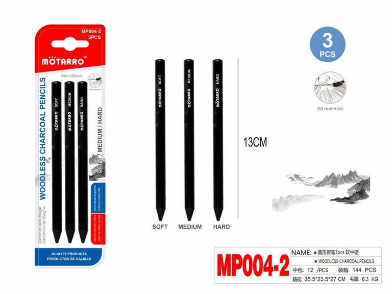 Apvalūs anglies pieštukai 3 vnt minkštas vidutinis kietas MOTARRO