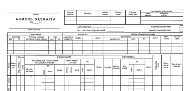 Asmens saskaita A4 1vnt.