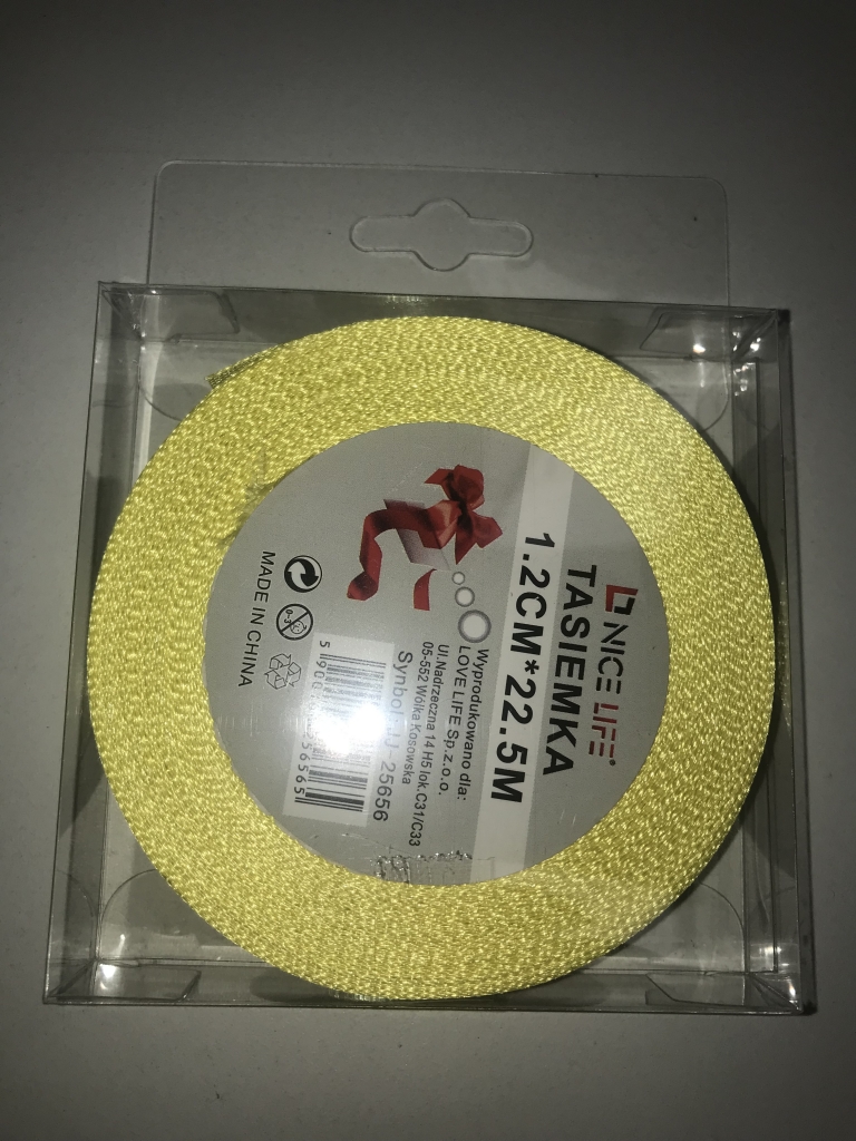 Atlasinė juostelė 12mm x 22,5m ryškiai geltonos sp.