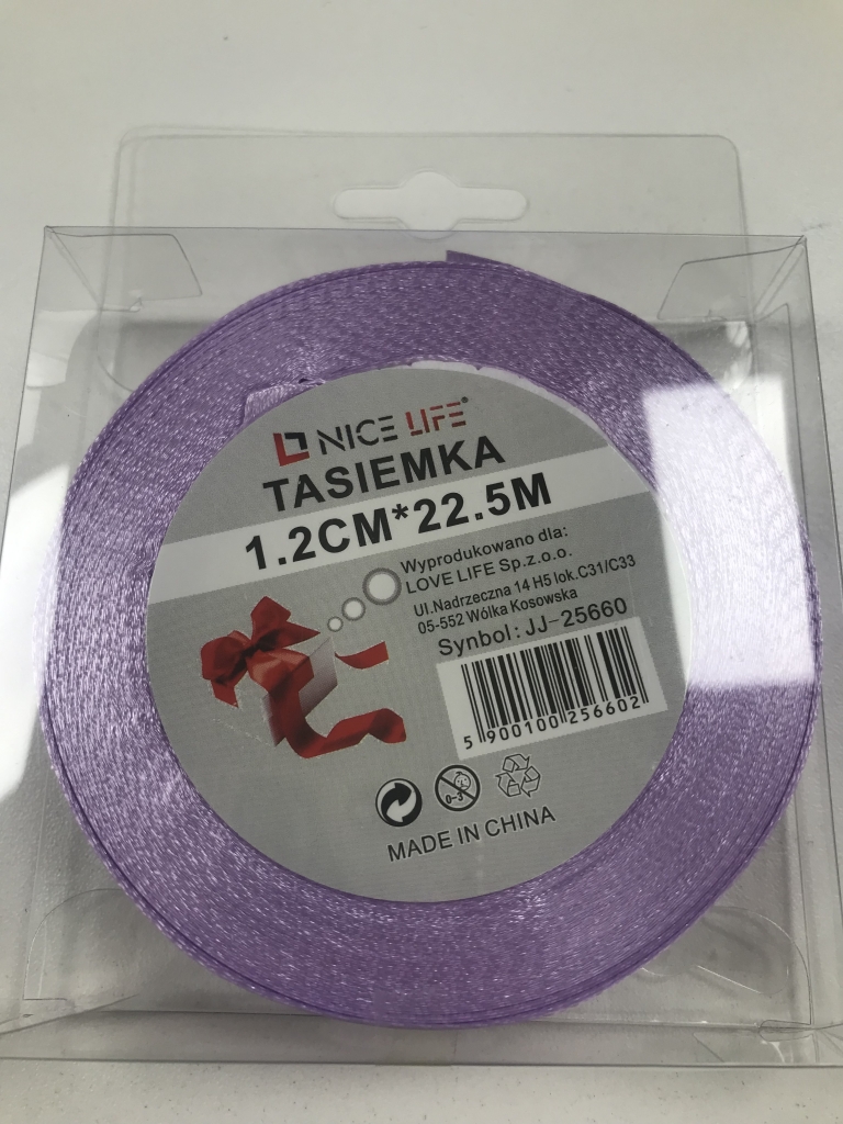 Atlasinė juostelė 12mm x 22,5m švelniai violetinė sp.