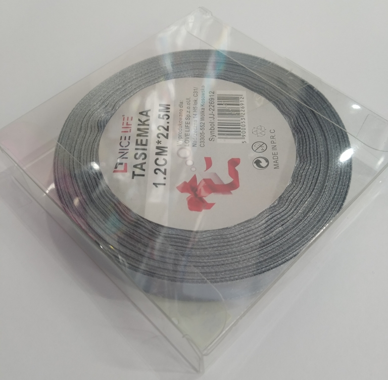 Atlasinė juostelė 12mm x 22,5m tamsiai pilkos arba rusdos sp.
