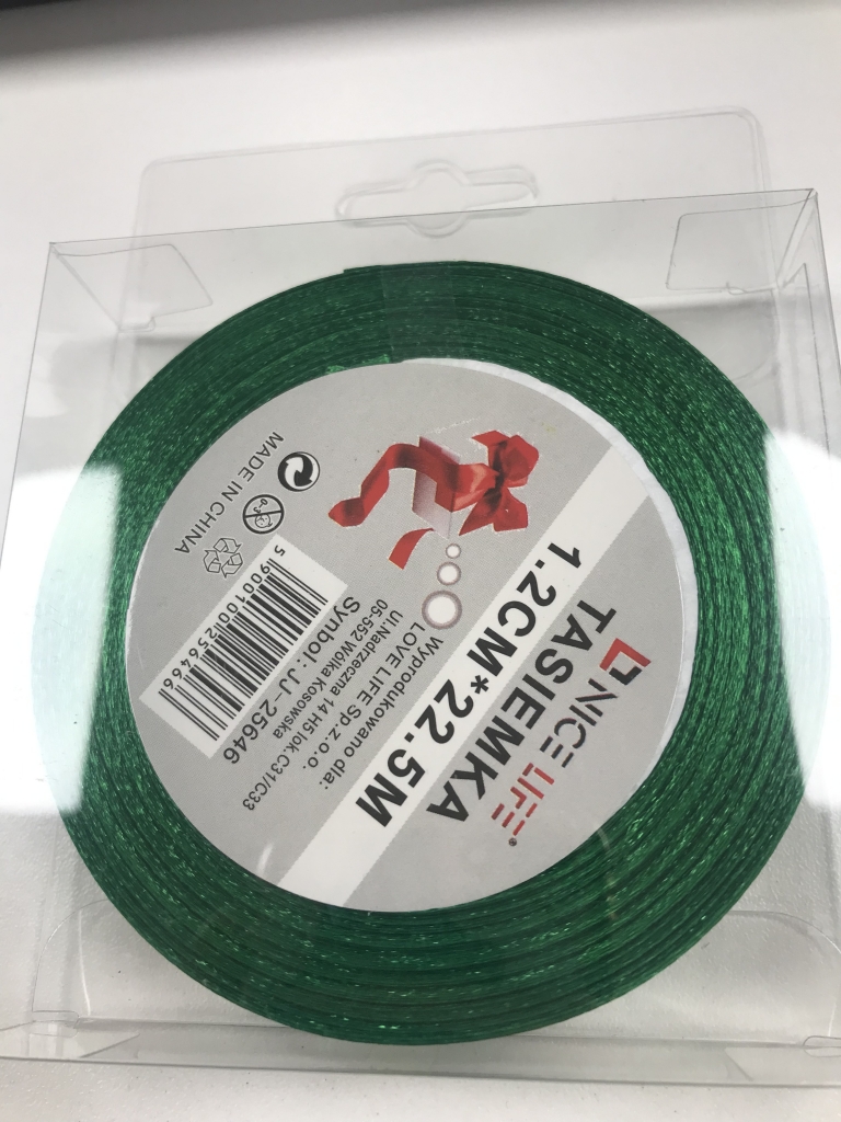 Atlasinė juostelė 12mm x 22,5m žalios sp.