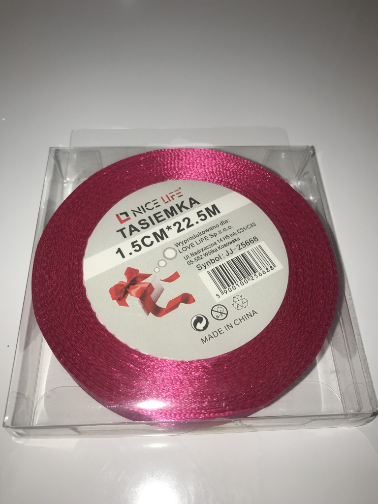 Atlasinė juostelė 15mm x 22,5m avietinė sp.