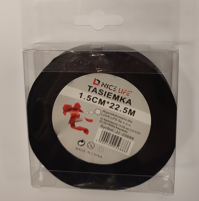 Atlasinė juostelė 15mm x 22,5m juodos sp.
