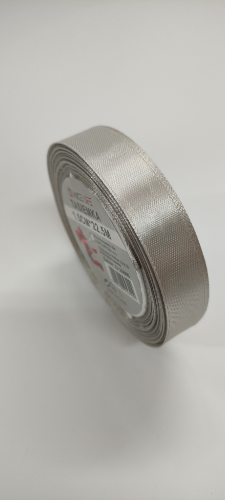 Atlasinė juostelė 15mm x 22,5m pilka sp.