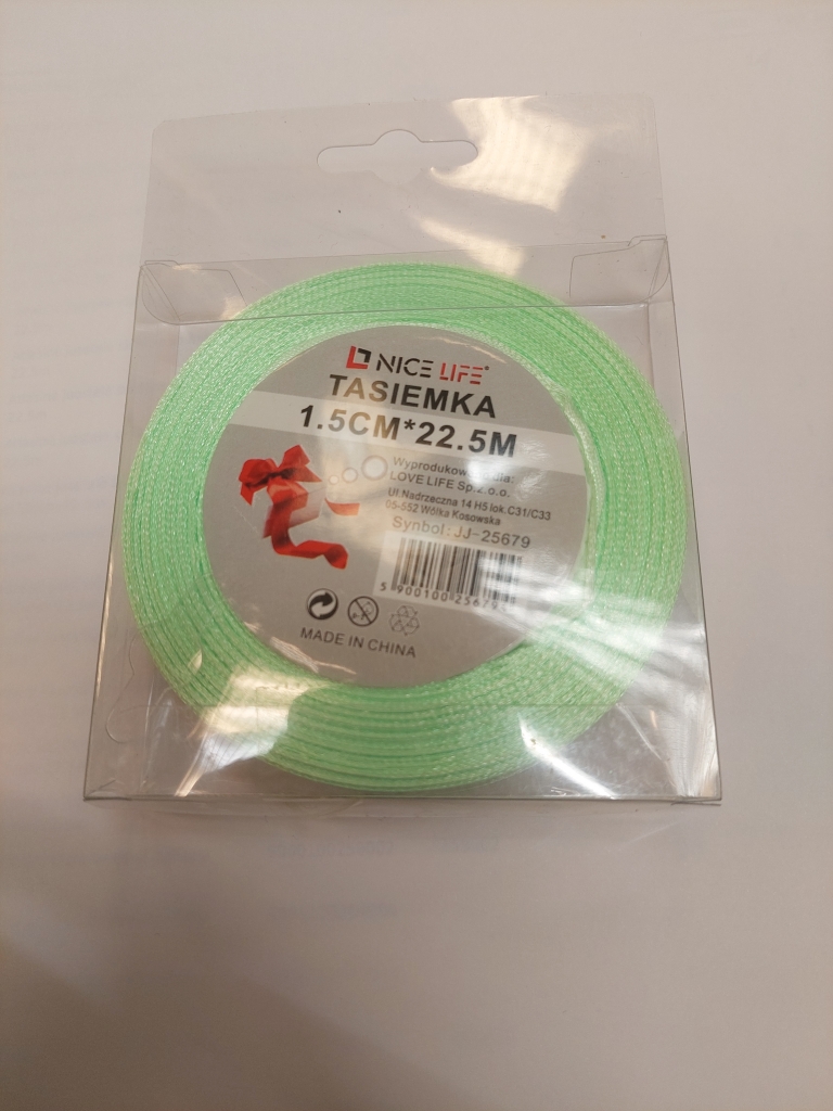 Atlasinė juostelė 15mm x 22,5m šviesiai žalia sp.