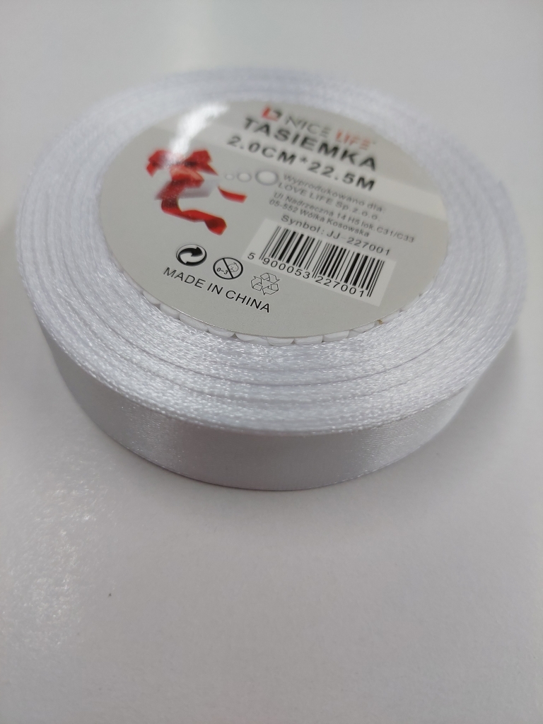 Atlasinė juostelė 20mm x 22,5m balta sp.