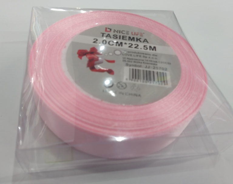 Atlasinė juostelė 20mm x 22,5m šviesiai rožinė sp.