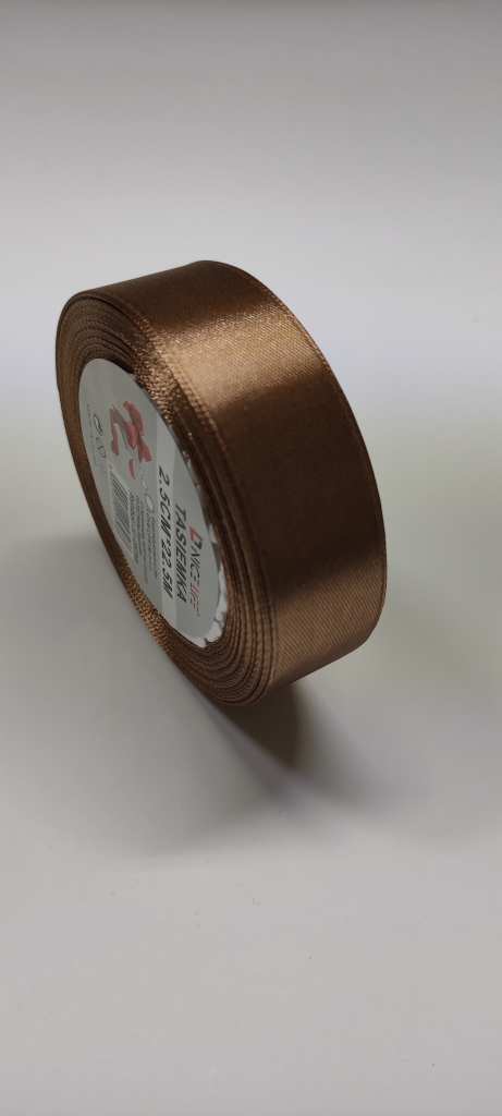 Atlasinė juostelė 25mm x 22,5m ruda sp.