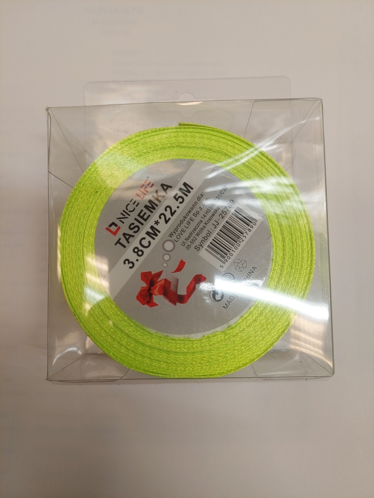 Atlasinė juostelė 38mm 22,5m ryškiai žalia