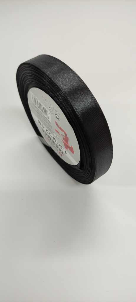 Atlasinė juostelė juoda sp.12mm 22,5m