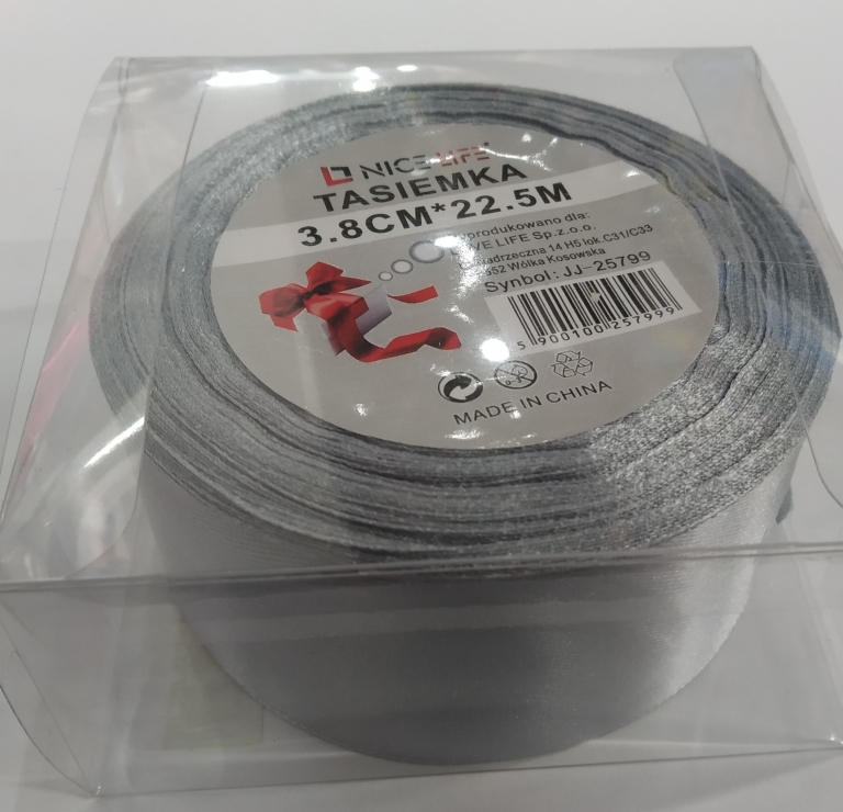 Atlasinė juostelė pilka sp. 38mm 22,5m
