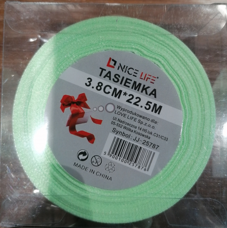 Atlasinė švelniai žalia juostelė 38mm 22,5m