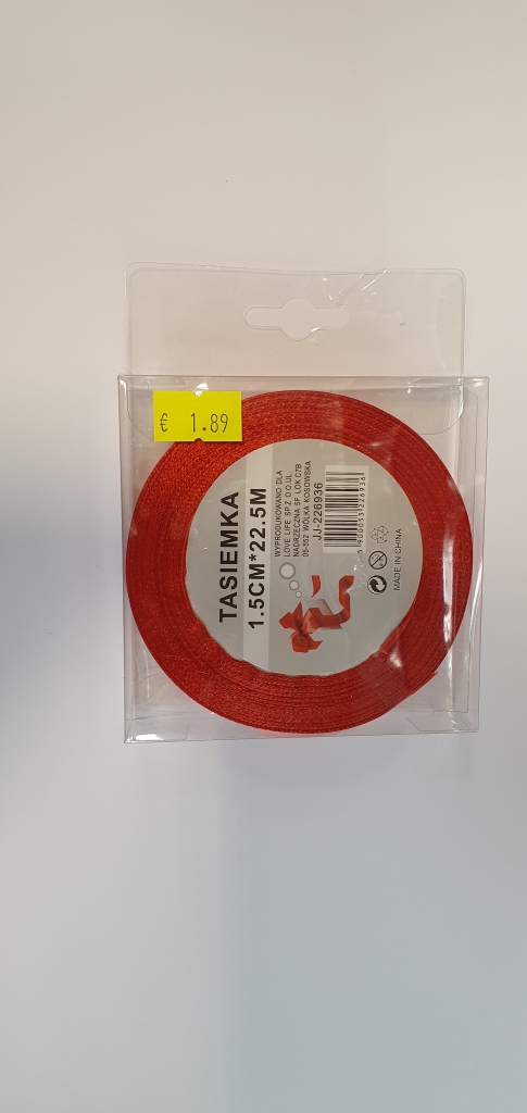 Atlastinė juostelė 1.5x22.5m skaisčiai raudona