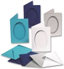 Penkių atvirukų ruošiniai su ovalo formos iškarpa.