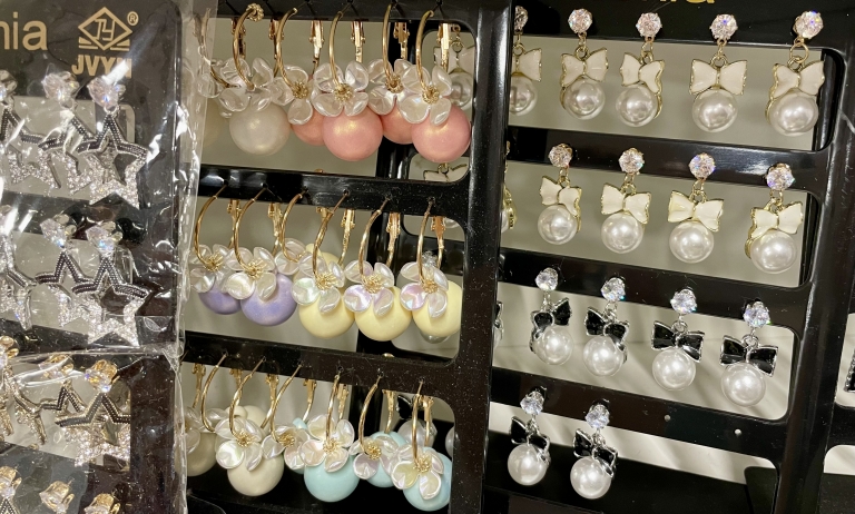 Auskarai su perlais ir kaspinėliais