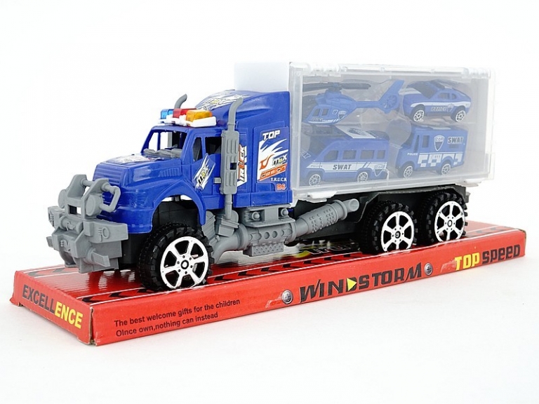 - Rinkinio turinys: Autovežis komplektuojamas su dviem mažomis policijos mašinytėmis, kurios puikiai tinka žaisti tiek namuose, tiek lauke.