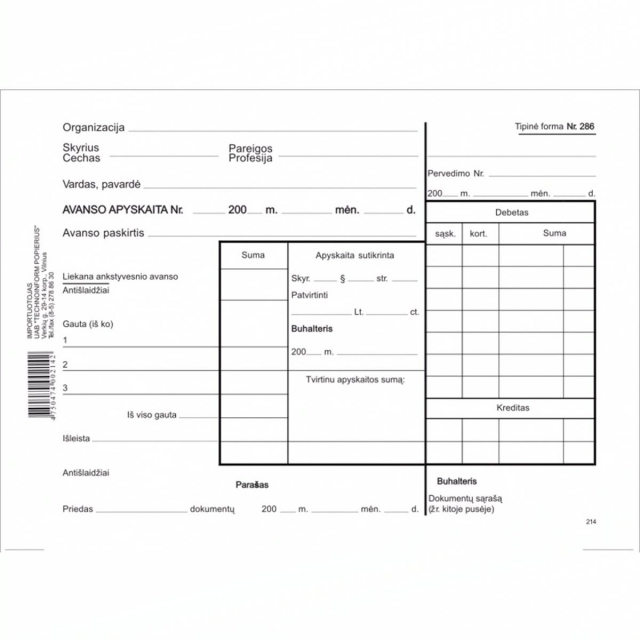 Avanso apyskaita 100vnt. 214