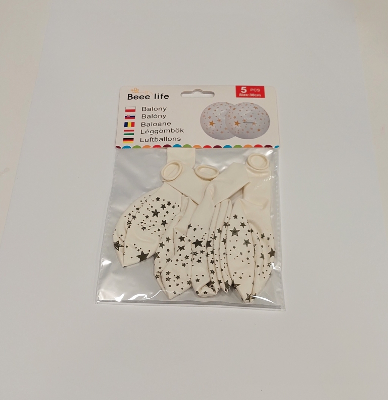Balionai 5vnt. "Žvaigždutės" 30cm. baltos spl.