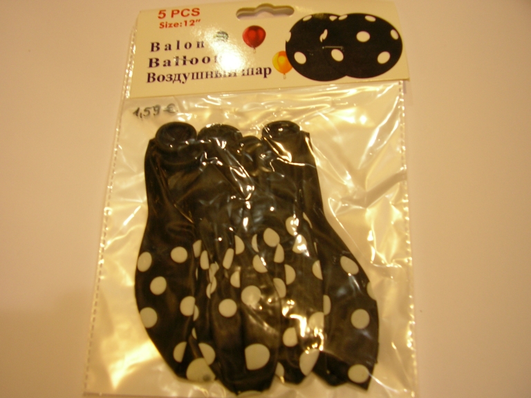 Balionai 5vnt 30cm žirneliais, juodos spalvos