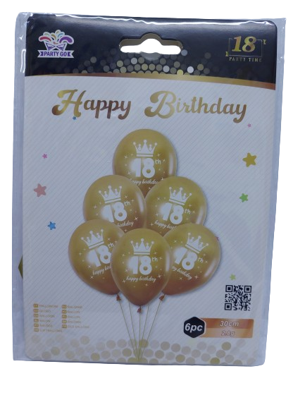 Balionai aukso spalvos, skaičius 18, 30 cm, 6vnt.