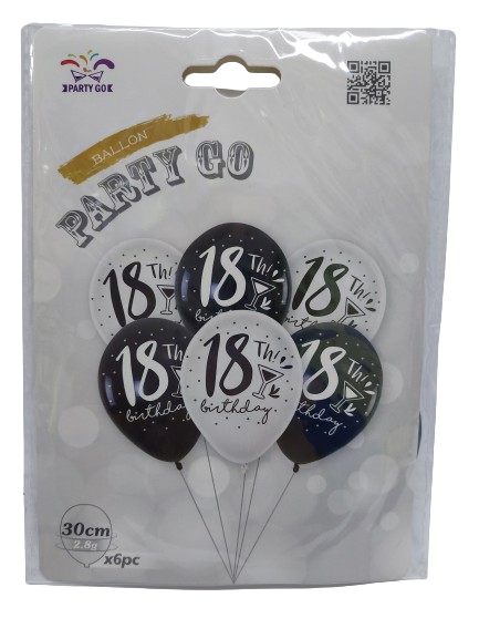 Balionai baltos-juodos spalvos su 18 skaičiumi (30 cm, 6 vnt) – puikus pasirinkimas jūsų šventei! Šie stilingi balionai ne tik papuoš jūsų šventinę aplinką, bet ir suteiks jai unikalumo bei elegancijos. Idealiai tinka gimtadienio, jubiliejų ar kitų ypatingų progų šventimui.