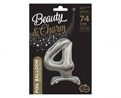 Balionai folinis skaičius ,,4 '' 74cm. pastatomas sidabrinis