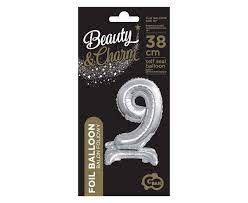 Balionai folinis skaičius ,,9 '' 38cm. pastatomas sidabrinės sp.