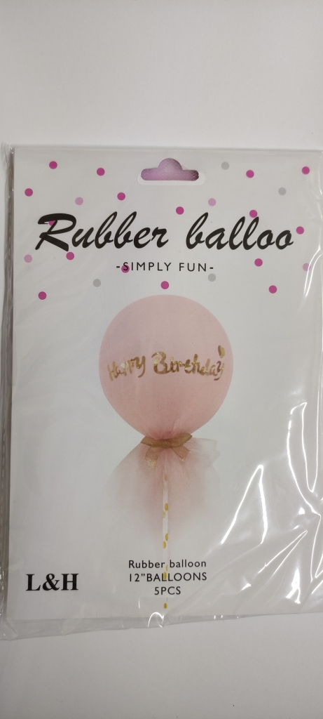 Balionai Happy Birthday 5vnt rožinės sp. su tiulu