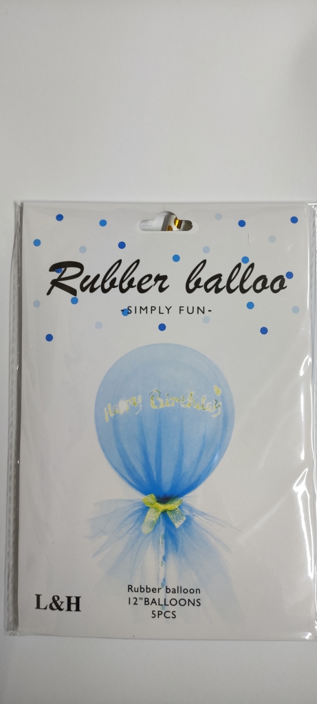 Balionai Happy Birthday 5vnt žydros sp. su tiulu