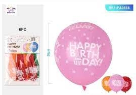 Balionai "HAPPY BIRTHDAY" 6vnt. - 30cm. įvairių spl.