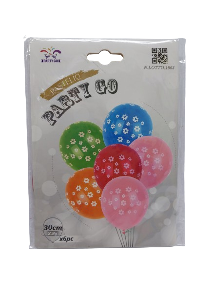 Balionai įv.sp. su gėlėmis 30cm,6vnt