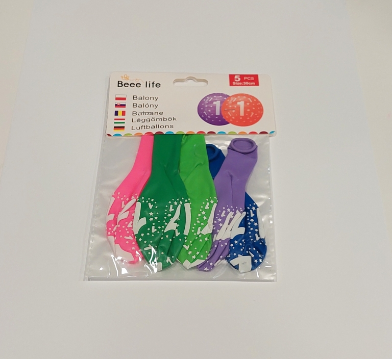 Balionai įv.spalvų 5vnt. "Skaičius 1" 30cm.