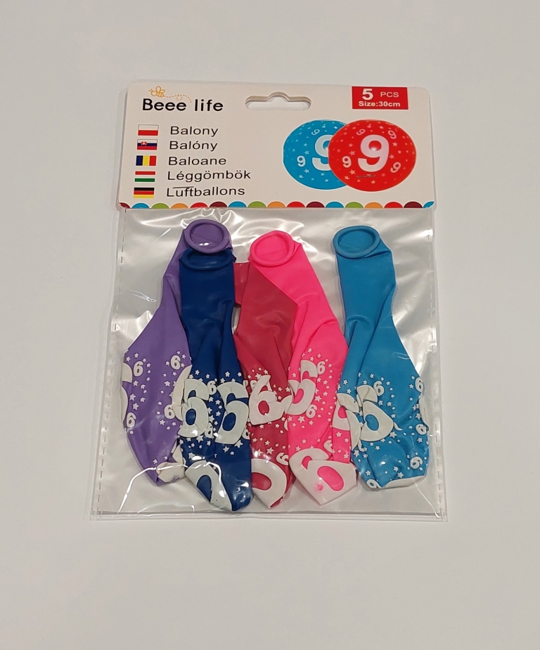 Balionai įv.spalvų 5vnt. "Skaičius 9" 30cm.