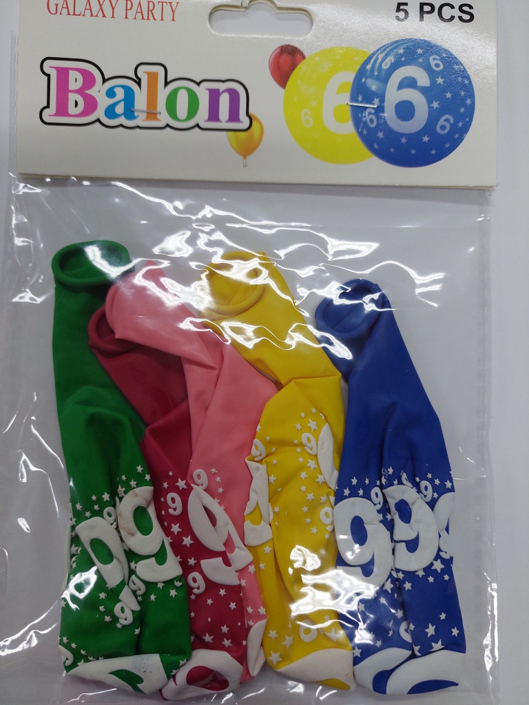 Balionai įvairių spalvų su skaičiais 6 ir 0, po 5 vnt.