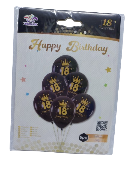Balionai juodos spalvos, skaičius 18, 30cm, 6vnt