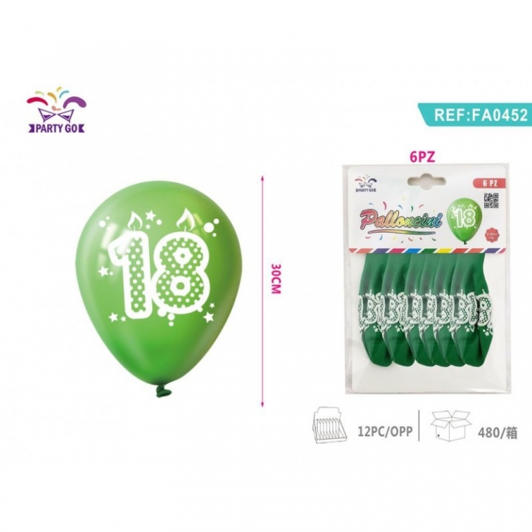 Balionai "Party Go" skaičius ''18" žalios spl.